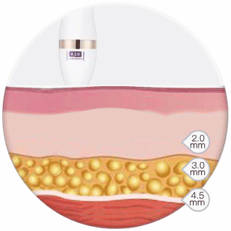 ●3.0mm:作用在真皮深层,可紧致皮肤的同时减少脂肪细胞