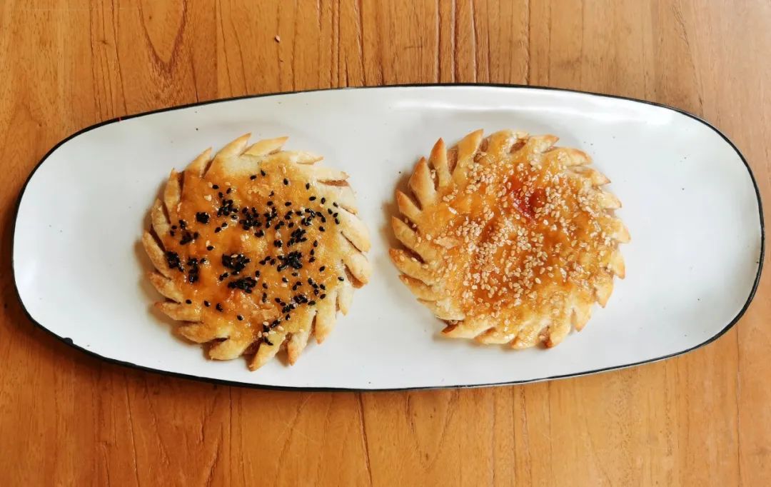 每款都有两个馅,醉山楂和醉苹果。为了便于区分,含醉山楂的点心淋了黑芝麻,含醉苹果的点心淋了白芝麻。