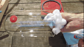 这个塞满棉花的玻璃罩,用来模拟肺。