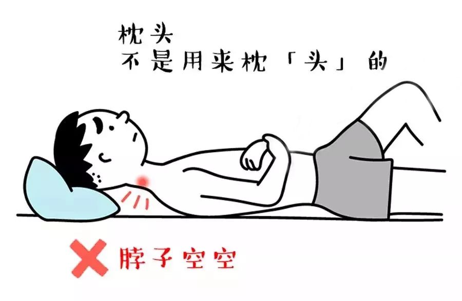 比如下面这种枕头,就是不合适的枕头,脖子悬空,这个时候的颈椎其实是绷紧的,早上起来不酸痛才怪。