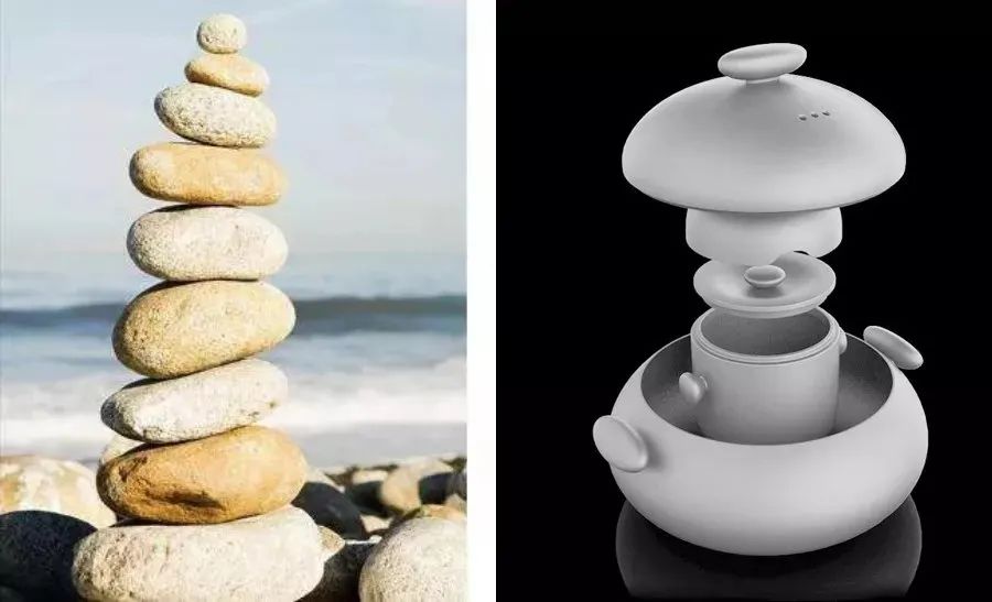 这款砂锅的设计灵感来自于大自然湖水边静美圆润的鹅卵石,从产品结构来看,很像是大小不同的鹅卵石堆叠在一起。
