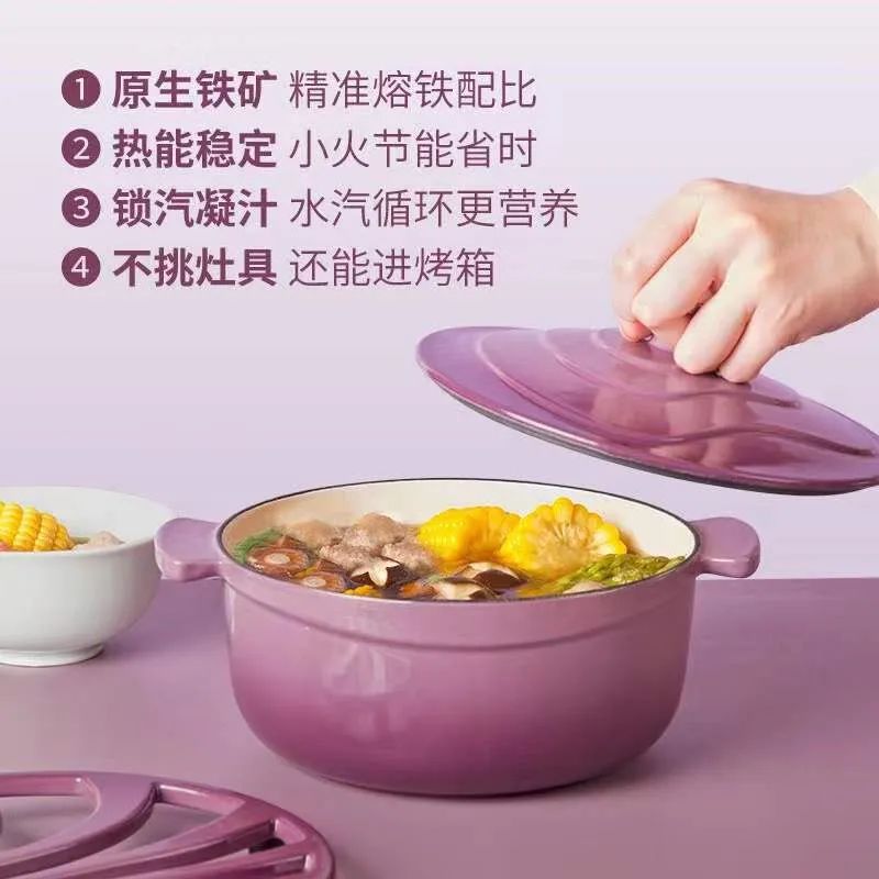 持续230℃的高温,铸铁能保证锅中的热能持久稳定,这都是小意思,一口好的珐琅锅,可以轻松让食物变好吃。