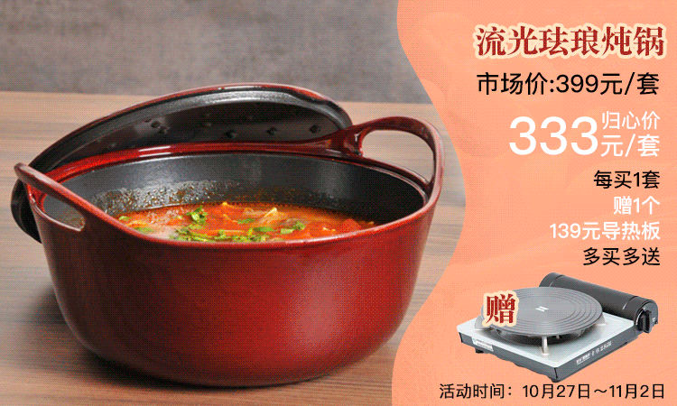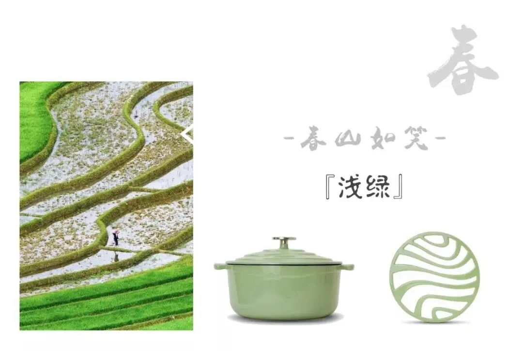 它采用梯田设计,国风配色,是一款真正意义上的中国风珐琅炖锅,让你的厨房与餐桌,也可以呈现秀美山河。希望爱与美食,诗和远方,你都能一并兼得!