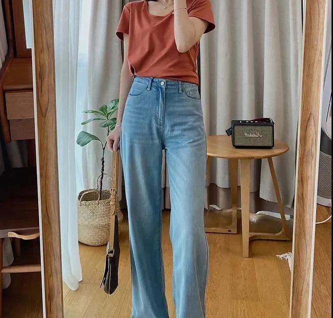 简单解释,老爹裤就是介于直筒裤和阔腿裤之间的一种裤型。