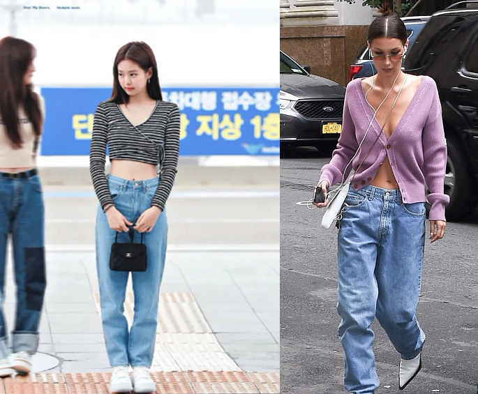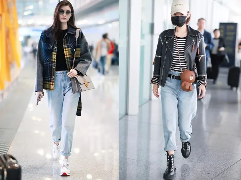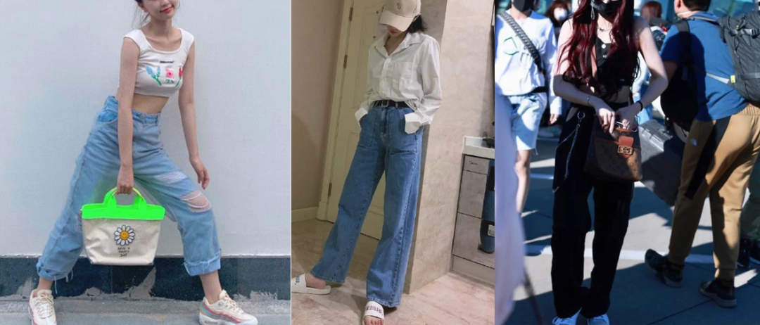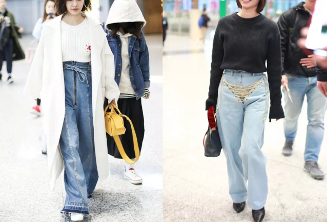 中腰和低腰的老爹裤,如果没有明星的颜值和身材,一般人是hold不住滴~