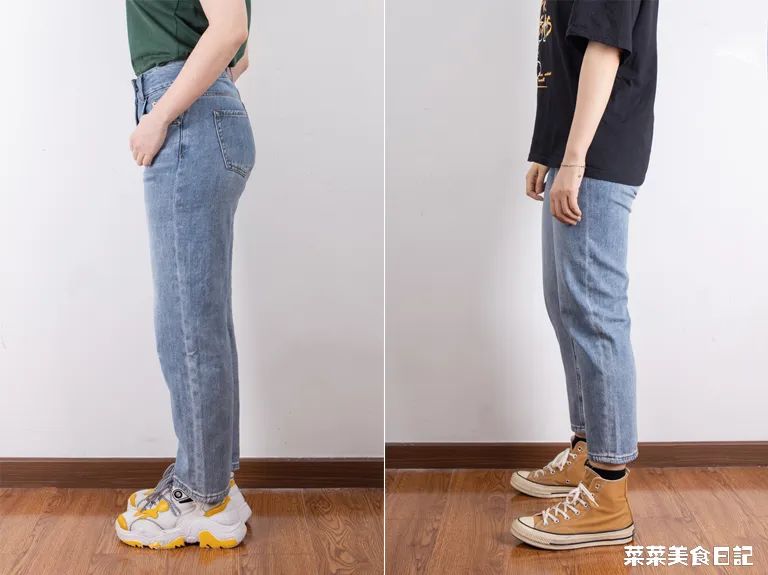 还真有!我们先来看一张菜菜实拍办公室妹子阔腿裤和老爹裤的对比图