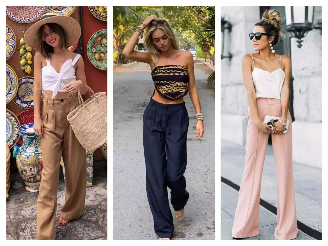 阔腿裤是从胯部开始直线扩张,下面只会越来越宽,呈现大A字形!