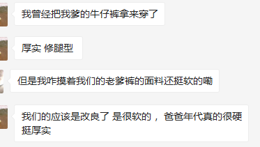 传统老爹裤质地厚重,硬硬的,穿在身上老觉得硌得慌,尤其是洗了之后,会硬成铁板。
