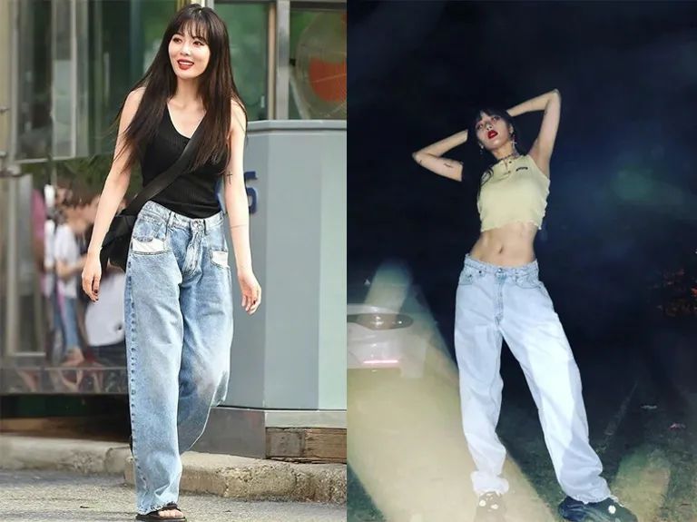 对身材自信满满的姐妹,直接copy泫雅的搭配,吊带、背心穿起来,又野又性感,不管漏不漏腹都吸睛!