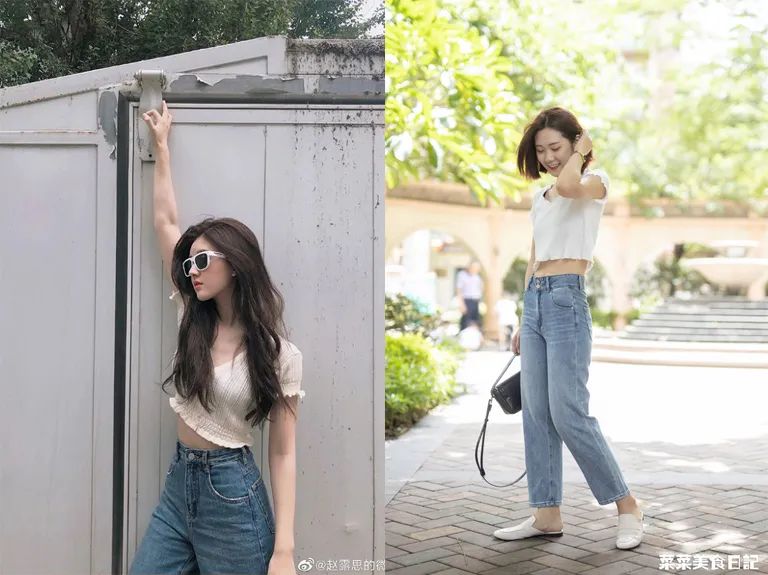 穿T的时候把衣角打结卷起,或者直接穿个crop top上衣,小个子姑娘也能穿出1米8的大长腿既视感!