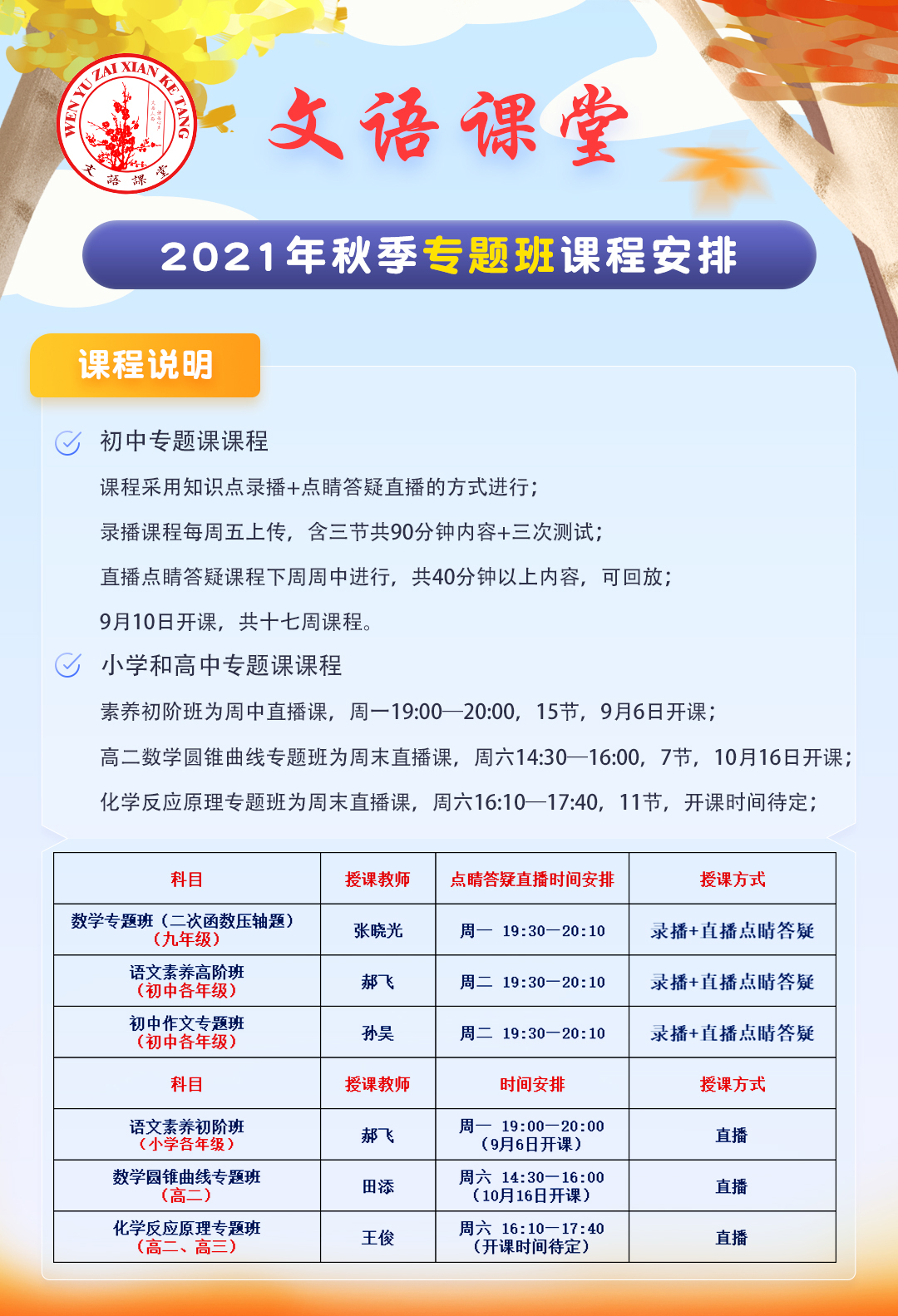 2021秋季专题课表/大纲