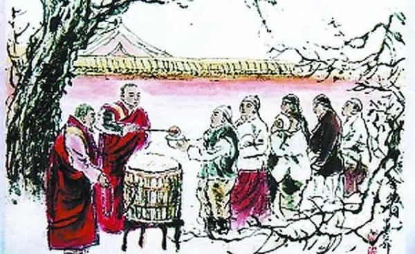 为了纪念这个特殊的日子,佛门弟子每逢这天,按照牧羊女熬粥投料那样如法炮制,熬成粥施舍给人们,最后由佛门善事扩展为民家习俗。