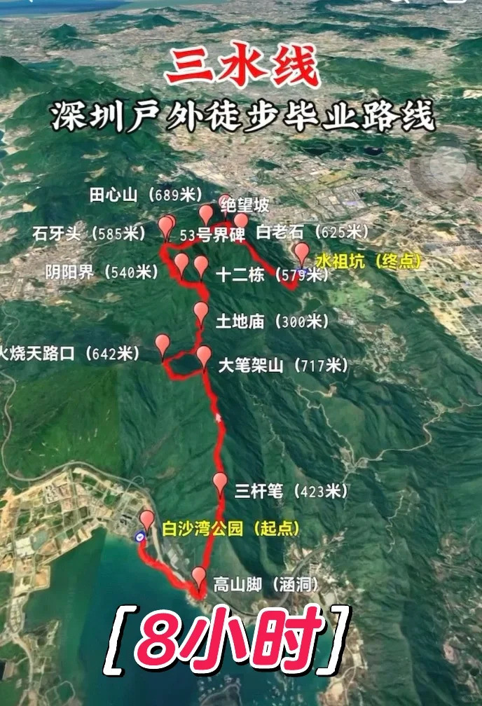 三水线,被誉为深圳户外徒步的“毕业线路”,全程约18公里,累计爬升超过1500米,需翻越33座山头,其强度与地形对体能、装备和意志力都是极大考验。