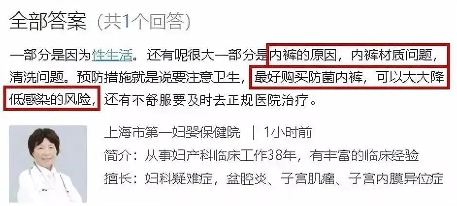 据世界卫生组织调查统计,80%的妇科病反复发作,都可能与内裤有关。专家也建议穿着防菌内裤,降低感染风险。