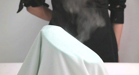 我们用蒸汽做实验模拟夏天的热气,测试它的吸湿透气性: