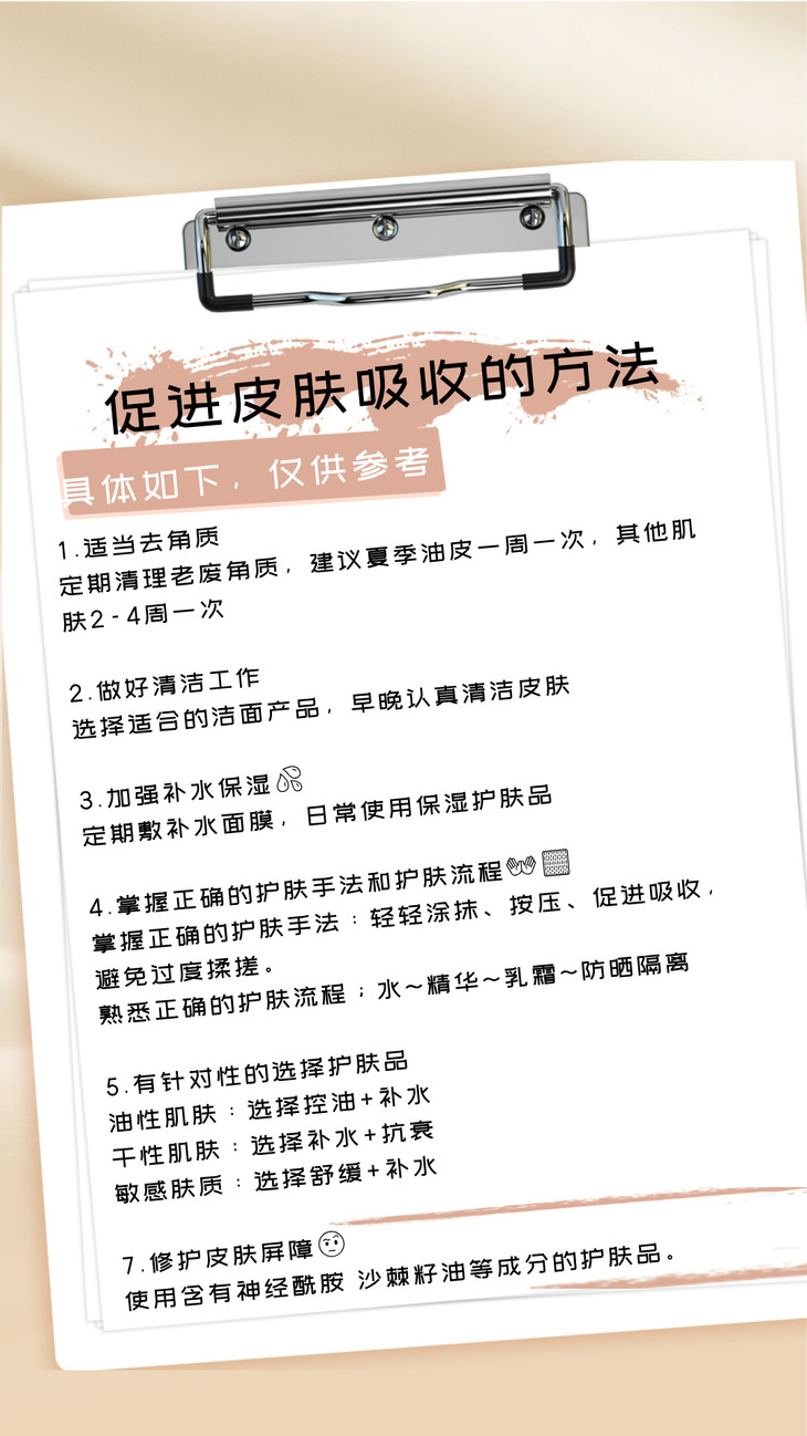 通过以上方法,可以改善护肤品不吸收的情况,让肌肤更好地吸收营养,保持健康状态💖