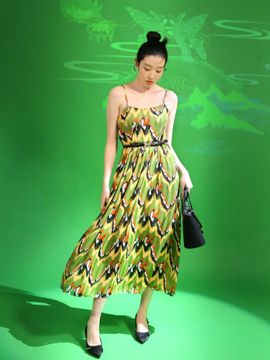 整条溪涧在裙摆苏醒