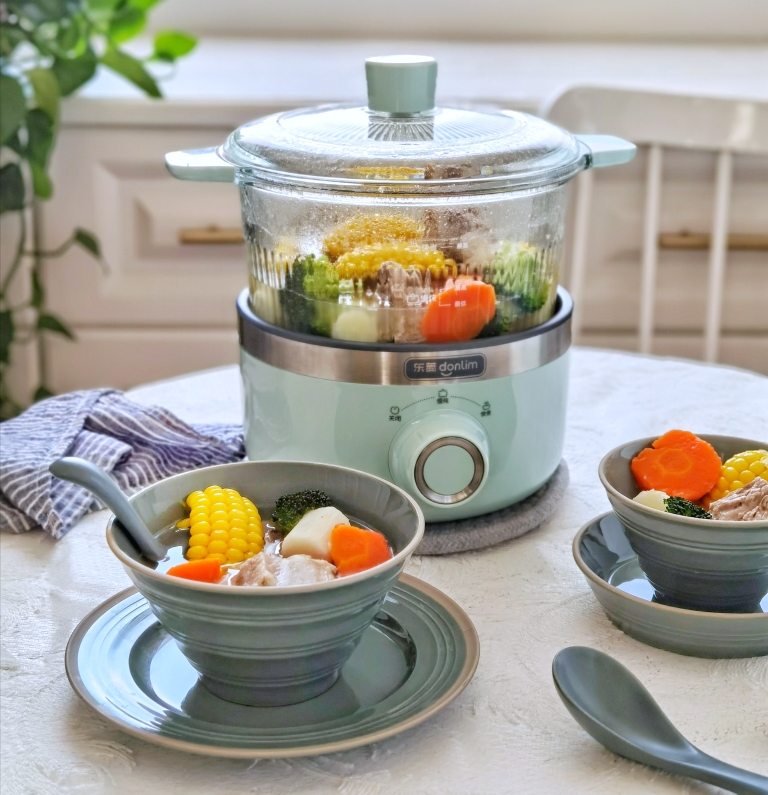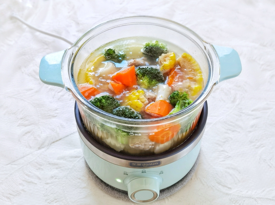 7. 养生锅调至快煮档,隔着玻璃看到汤沸腾后就调至慢炖档,炖30分钟。