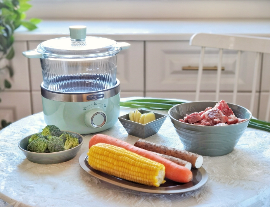 4. 东菱养生锅调至快煮档给排骨焯水。