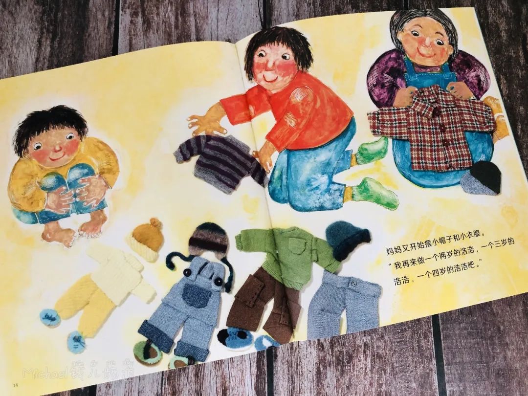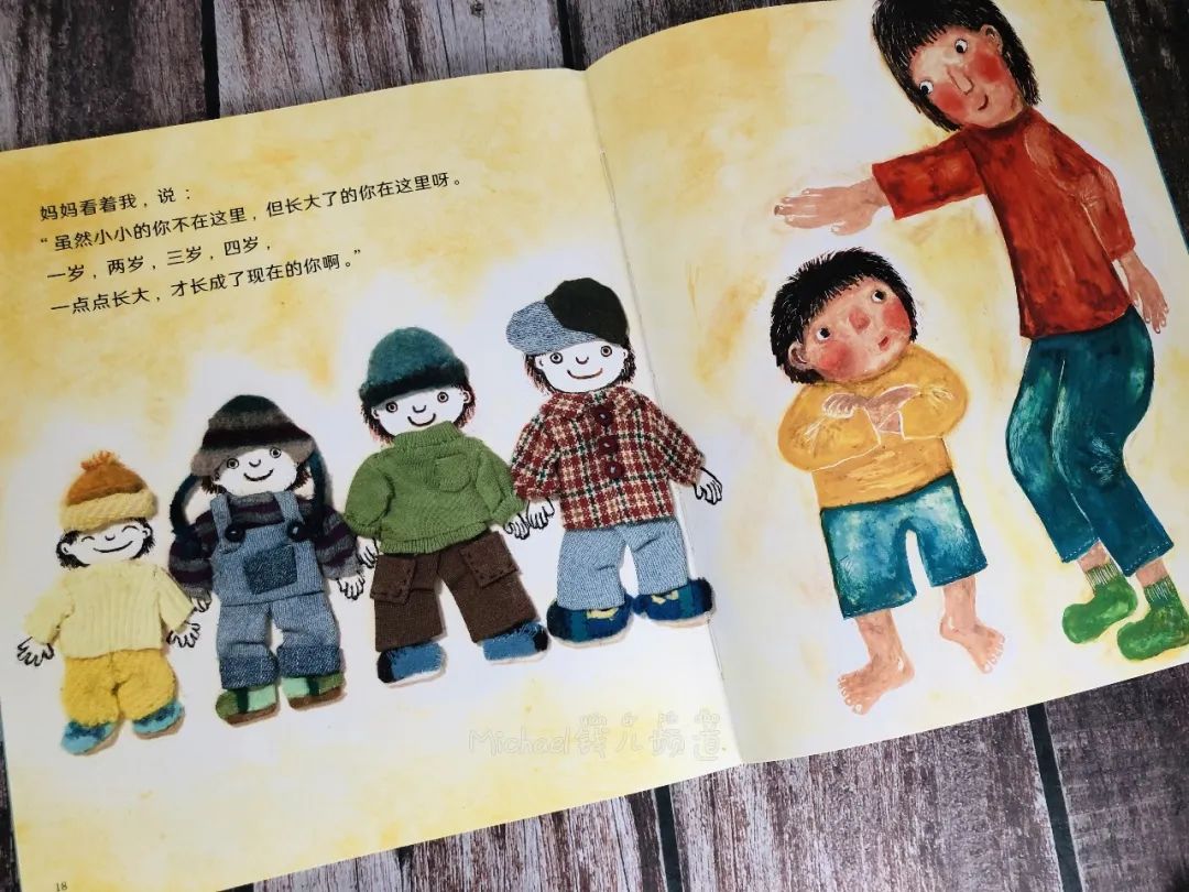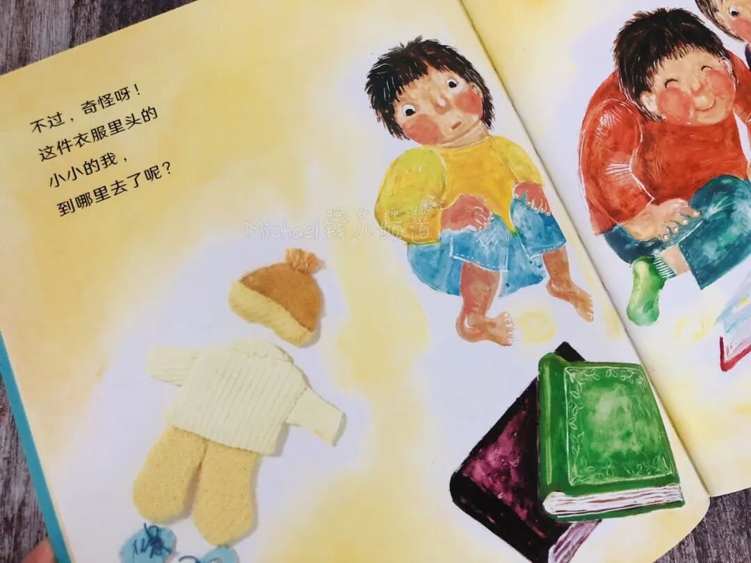 虽然小小的你不在这里,但穿过的小衣服,见证了你的成长。用孩子熟悉的情景,告诉他们“长大”的概念——
