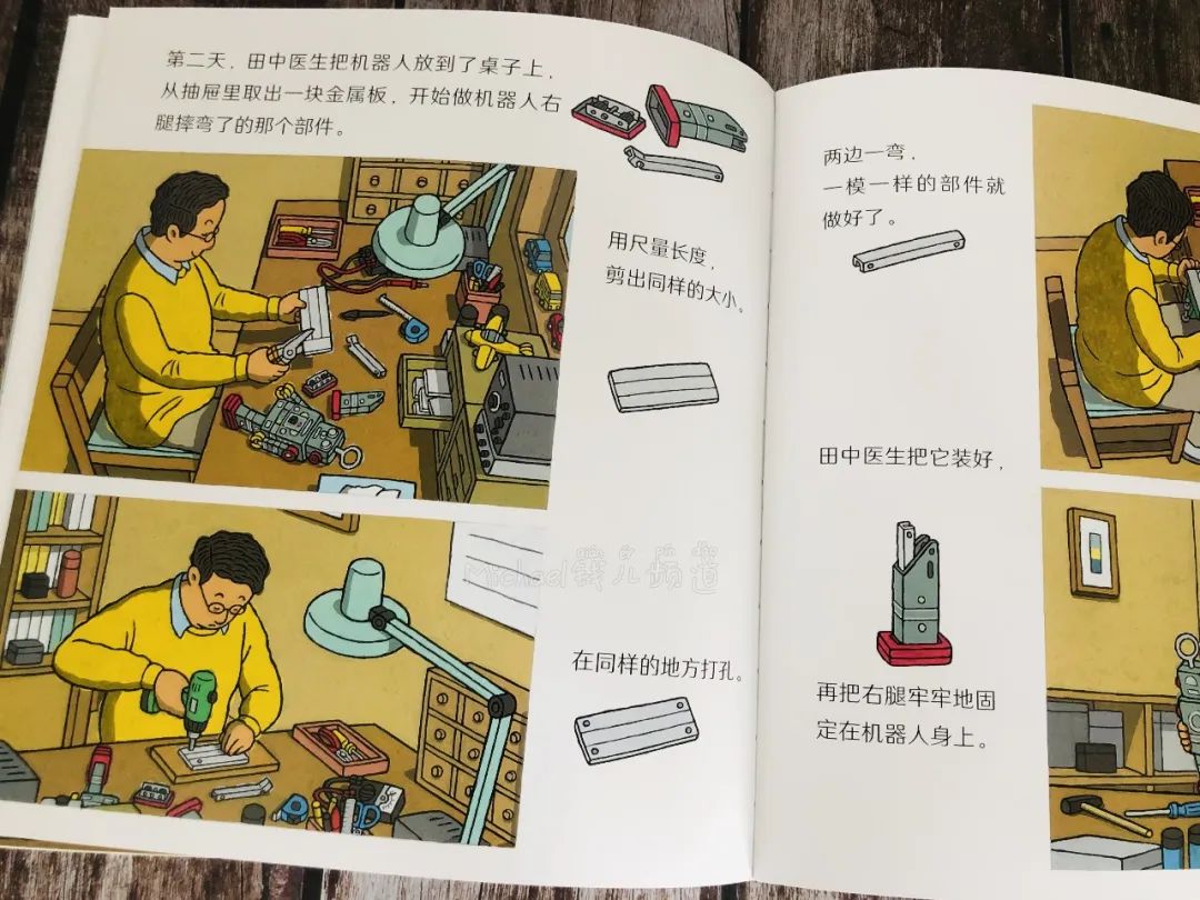 而我们小主人公的机器人,损坏得比较严重,需要“住院修理”,医生还要换掉它的腿部零件——