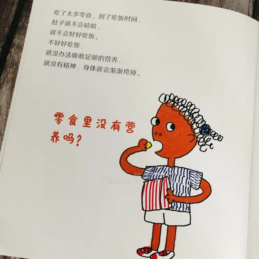 顺便还提醒了孩子零食的营养是不够的,要养成按时吃饭的好习惯——