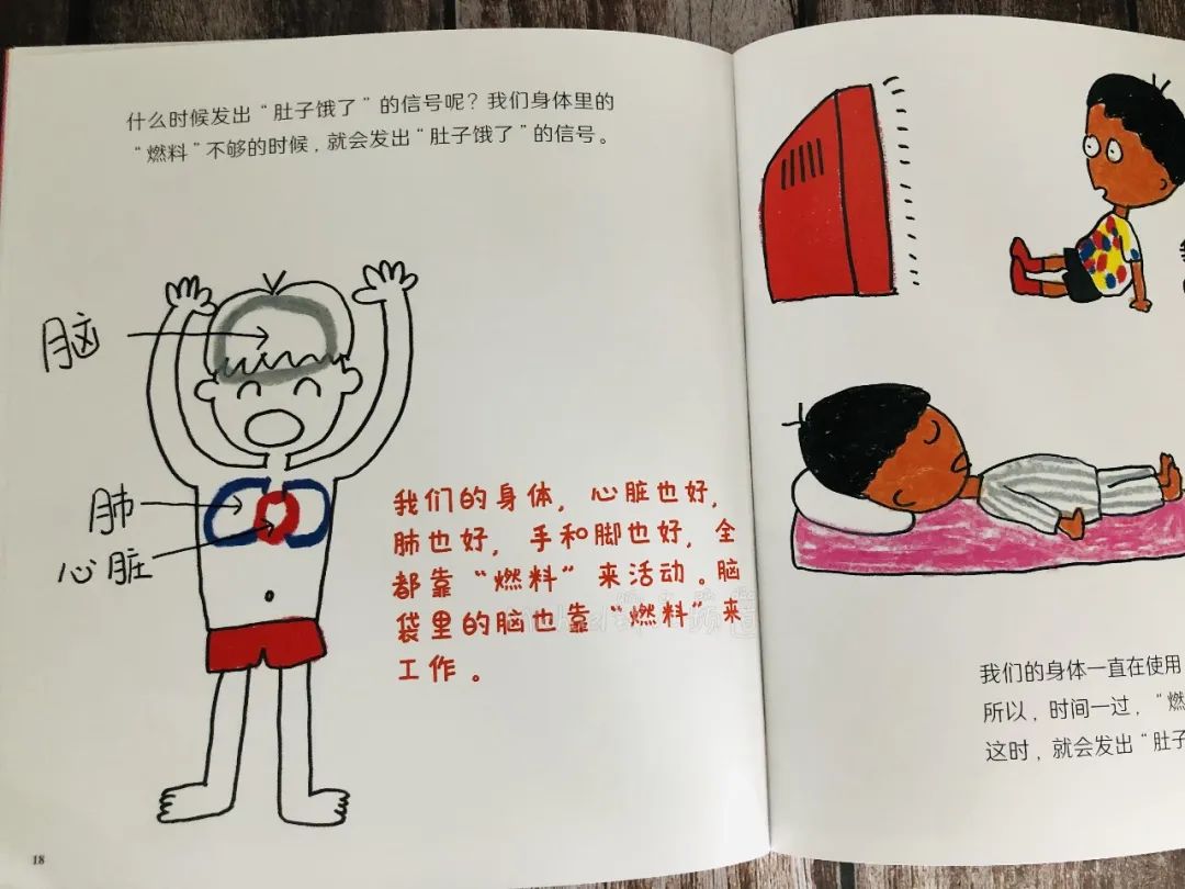 原因是因为我们消化了食物,身体里的“燃料”不够了,这里就给孩子科普了消化的原理——