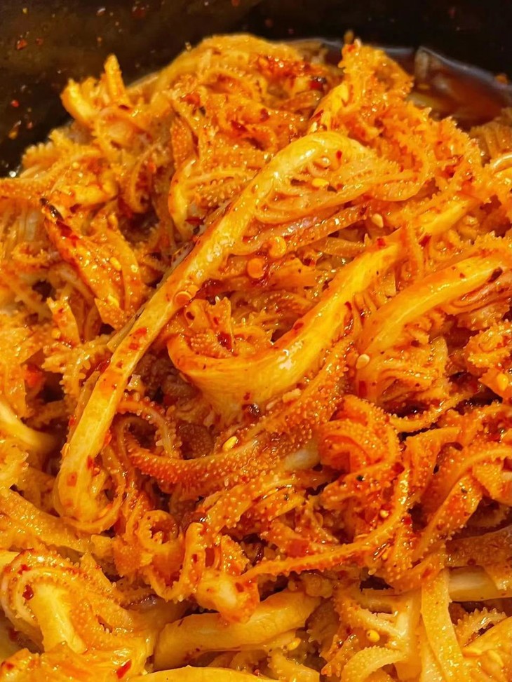 最重要的是这个毛肚我真的没有一点腥味💘 💘 💘 能处理成这样真的要给一个赞 👍 👍 👍 这样既可以做到卫生,拌起来味道也更佳。💪 最主要味道是真不错啊❗️ ❗ ❗ 又辣🌶又麻辣嘎嘎脆爽,😋😋😋