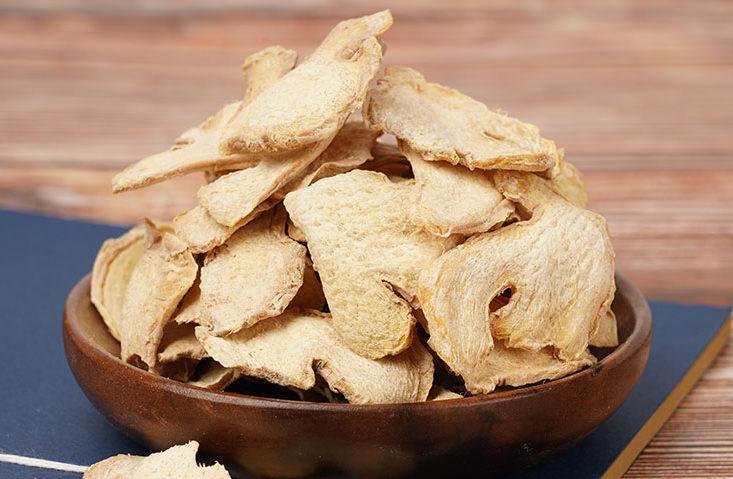 干姜:味辛,性热,具有驱寒回阳,温中止呕,温肺止咳的功效。