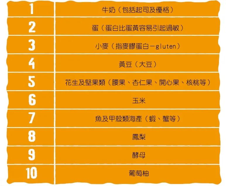 过敏原 | 粉尘、螨虫、食物、化学物质 | 食物 |