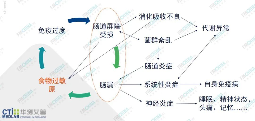 正常食物进入人体,会被消化分解成小分子的营养物质,透过肠道吸收成为身体的能量或营养物质。但如果消化吸收不完全,就没办法完全分解大分子蛋白,大分子蛋白在进入身体时,会形成抗原,激发免疫反应产生lgG抗体。大分子抗原在进入全身循环时,会形成免疫反应复合物,在全身组织中不同的地方产生沉淀,就会引发免疫反应,导致各个系统的慢性病。