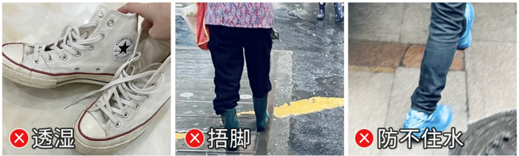 而同事小心翼翼踩着帆布鞋出门,还是全都透湿了,