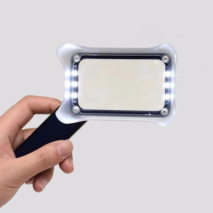 这款手持式放大镜便携又轻巧,和手掌差不多大,用着一点也不累。有了它以后,日常需要看东西的时候方便多了!