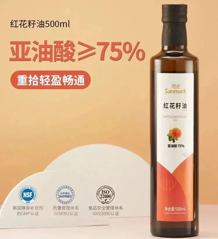其他品牌的红花籽油亚油酸成分仅仅>64%,而这款红花籽油亚油酸成分≥75%,在行业中属于佼佼者了。