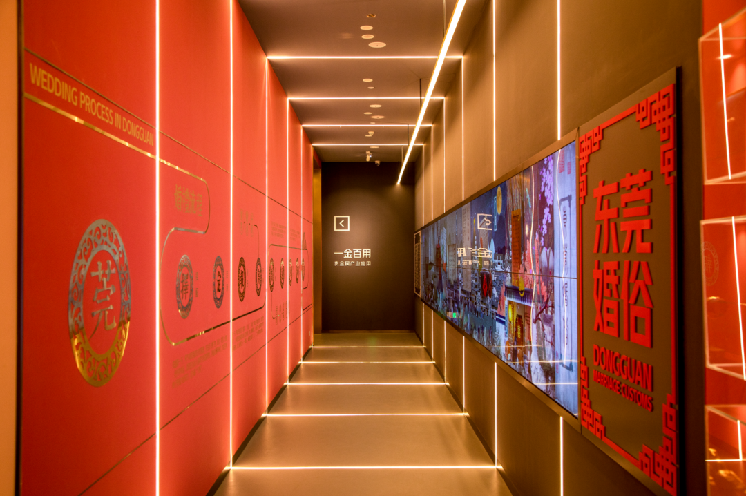 汇金楼馆内展示面积约640平方米,共分为序厅、黄金历程、汇金境界、金玉良缘、一金百用、多功能体验区六大展厅。馆内系统展示了世界和中国黄金的发展历史,全面呈现了黄金首饰制作技艺和东莞各地区的婚俗风貌,并重点展现了贵金属新材料在国家战略性新兴产业上的价值成果。