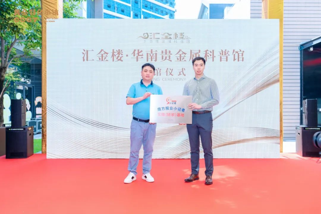 剪彩结束,接下来由国检教育科技(深圳)有限公司总经理徐军和广东南方日报经营有限公司东莞分公司总经理郝金朋对汇金楼华南贵金属科普馆进行授牌,汇金楼将作为“国检教育实训基地” 和 “南方报业小记者实践(研学)基地”发挥更大的作用。此次授牌,对汇金楼凝聚教育力量,推动东莞研学教育发展具有重要意义。以此次授牌为契机,汇金楼将继续创新研学教育新模式,积极发挥科普、教育、传承、实践等功能,打造具有自身特色和优势的研学实践教育基地。