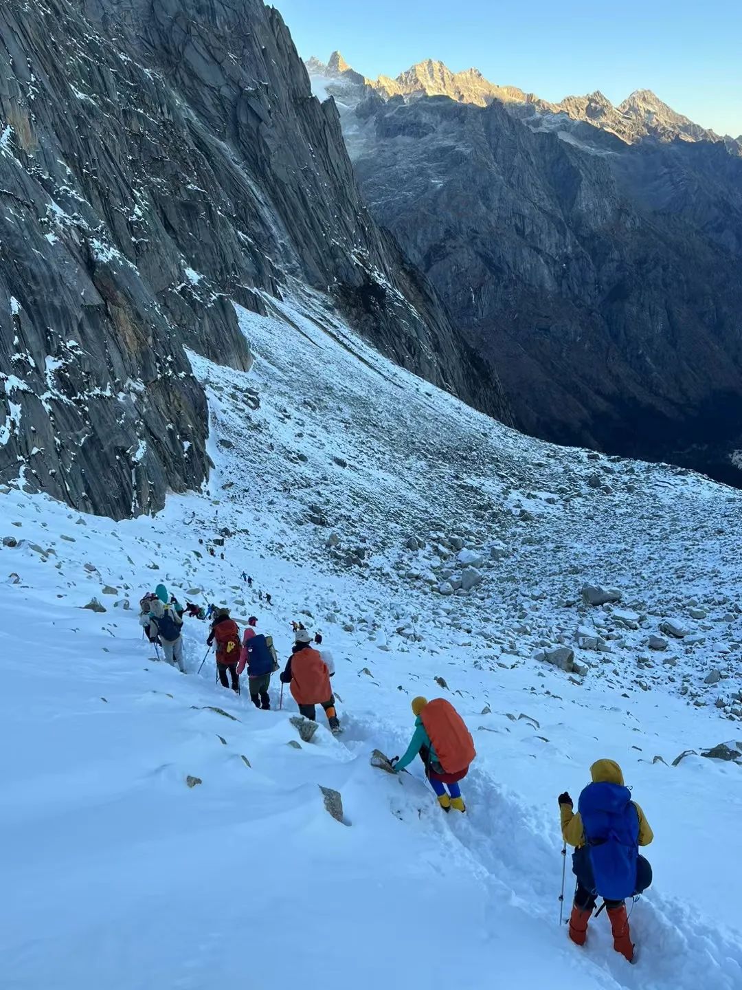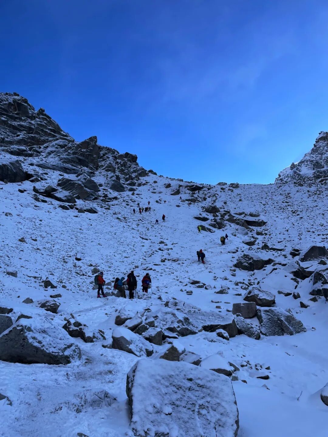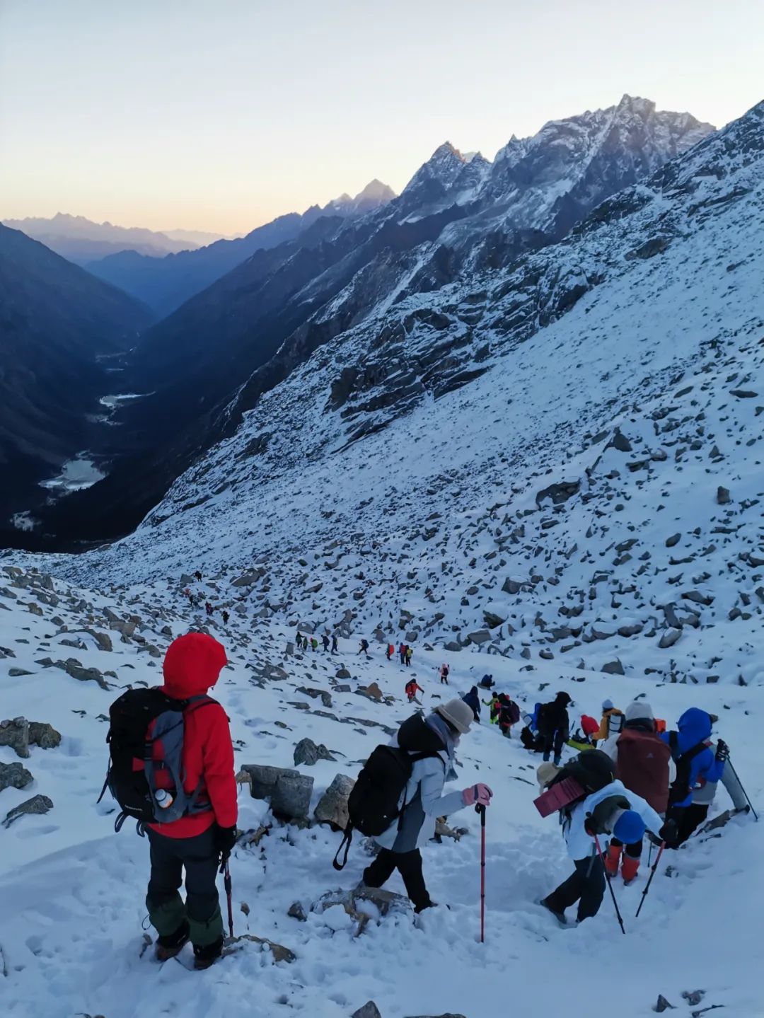 前两天路况太过简单舒适,具有极高的迷惑性,让我以为长穿毕也就这样了,分分钟就能拿下。直到凌晨 2 点被向导叫醒,我不得不忍着强烈的睡意和刺骨的寒冷开始翻垭口,才后知后觉地意识到:可能我才是被拿下的那一方。