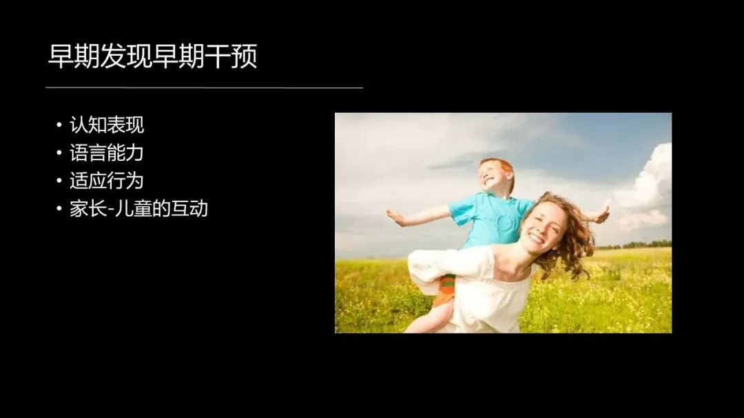 早期的发现和干预可以帮助儿童提高认知表现、语言能力、适应行为以及建立儿童和家长之间的亲子关系,提高他们的互动。