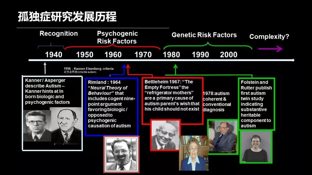 并且在这个时候出现了对孤独症双胞胎的研究,就认为原来孤独症的发病跟遗传相关。所以在今后的几十年里面,孤独症的研究主要集中在它的遗传方面的因素。