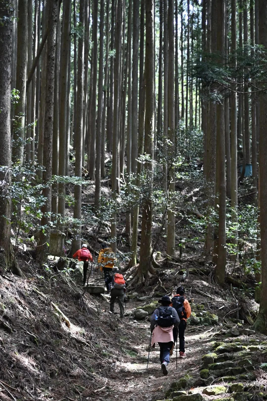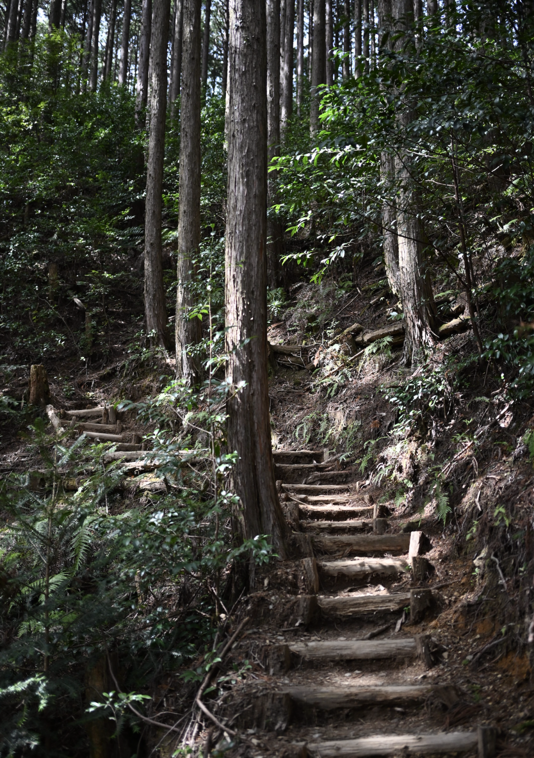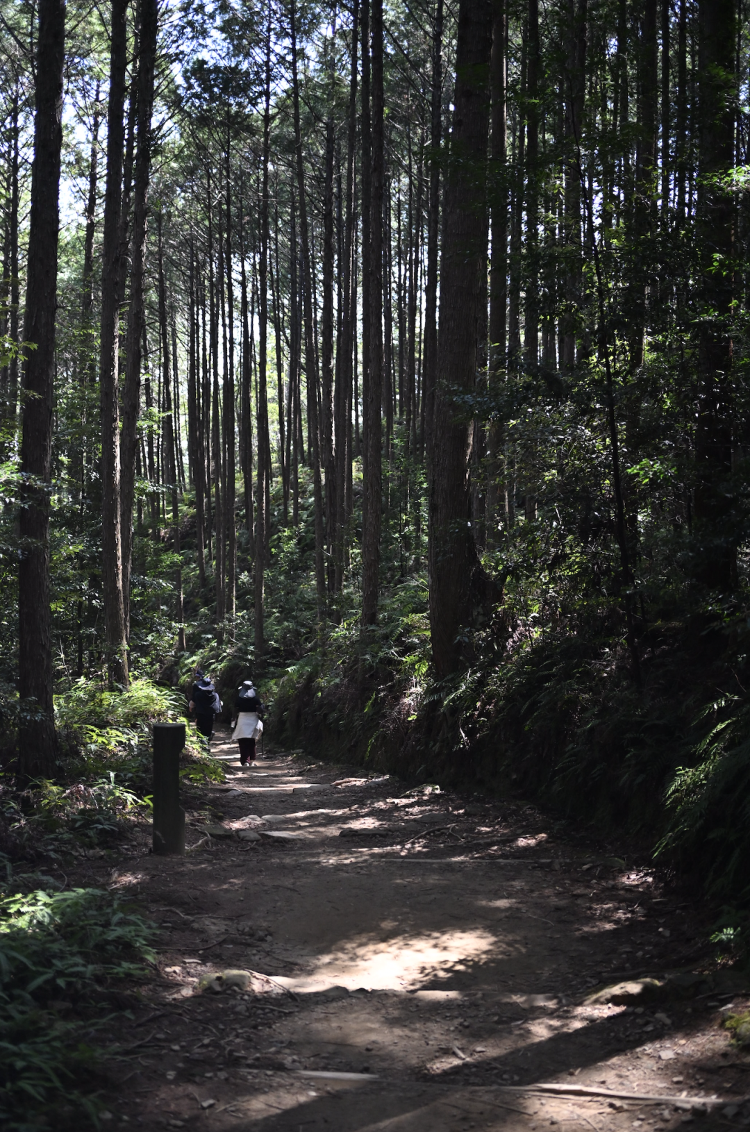 今天将从继樱王子出发,虽依然是在山林中穿梭,但今天的山林仿佛被赋予新的活力。继樱王子是一座小神社,但神社周围有很多棵拥有800多年历史的柳杉,树枝皆向南伸展,仿佛在指引着前行的方向。