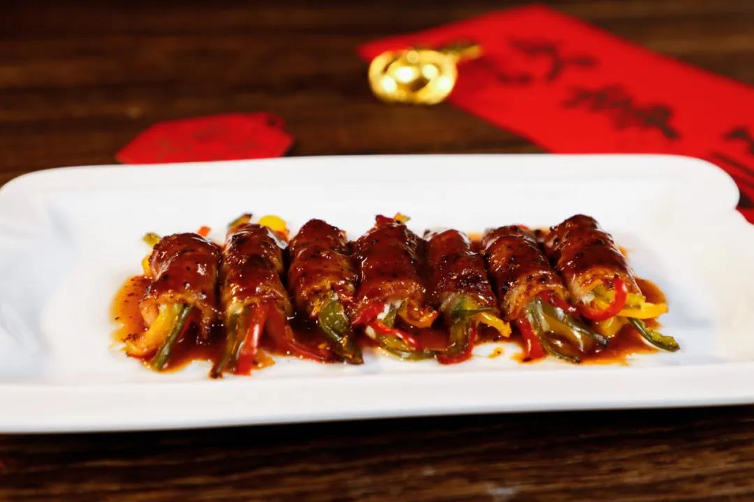 今天带来的这份浇满照烧酱汁的彩椒猪肉卷,红红火火的样子,看起来令人食欲满满。