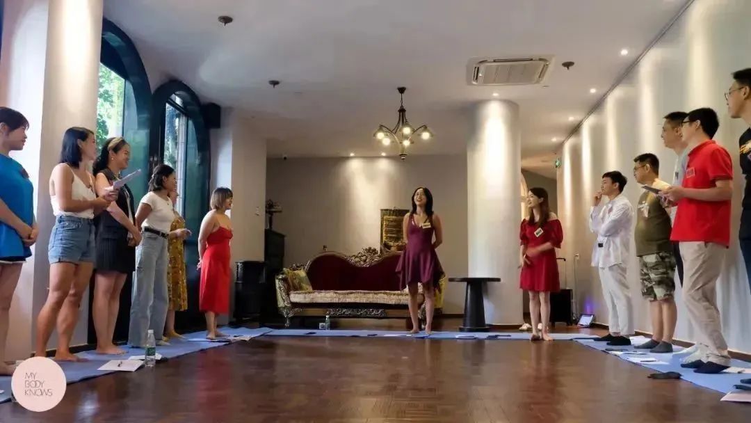 印象最深的一个环节,就是戴着眼罩,等待着其他学员用各种不同物品,触碰我的嗅觉,听觉跟触觉。