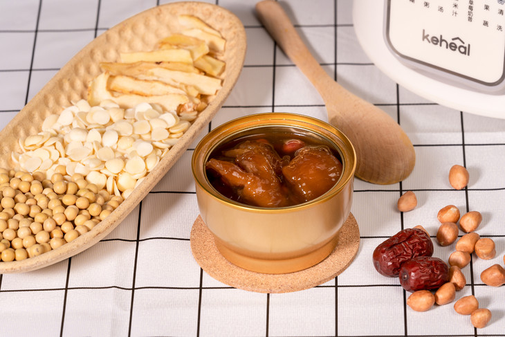 小贴士:如果想吃整块花胶,可以将除了花胶之外的其他食材打好,装碗后再加入即食花胶