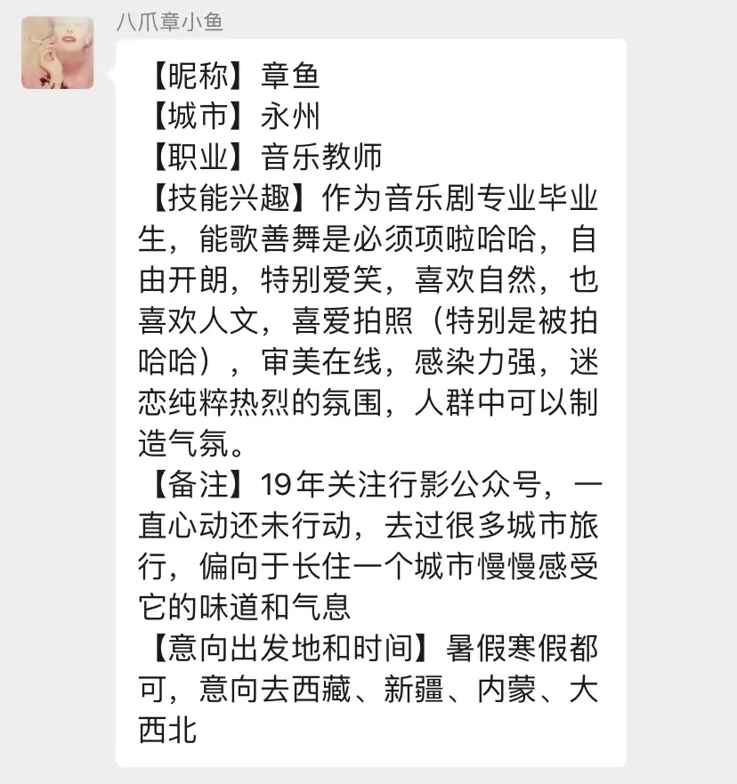 【备注】19年关注行影公众号,一直心动还未行动,去过很多城市旅行,偏向于长住一个城市慢慢感受它的味道和气息