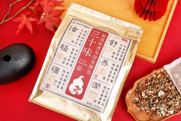 它参考《黄帝内经》“君臣佐使”历经了30次配方调整,200多次的剂量调配,通过1000多次的试验,历时1680天才有了这款李时珍30味祛湿驱寒足浴保健包。
