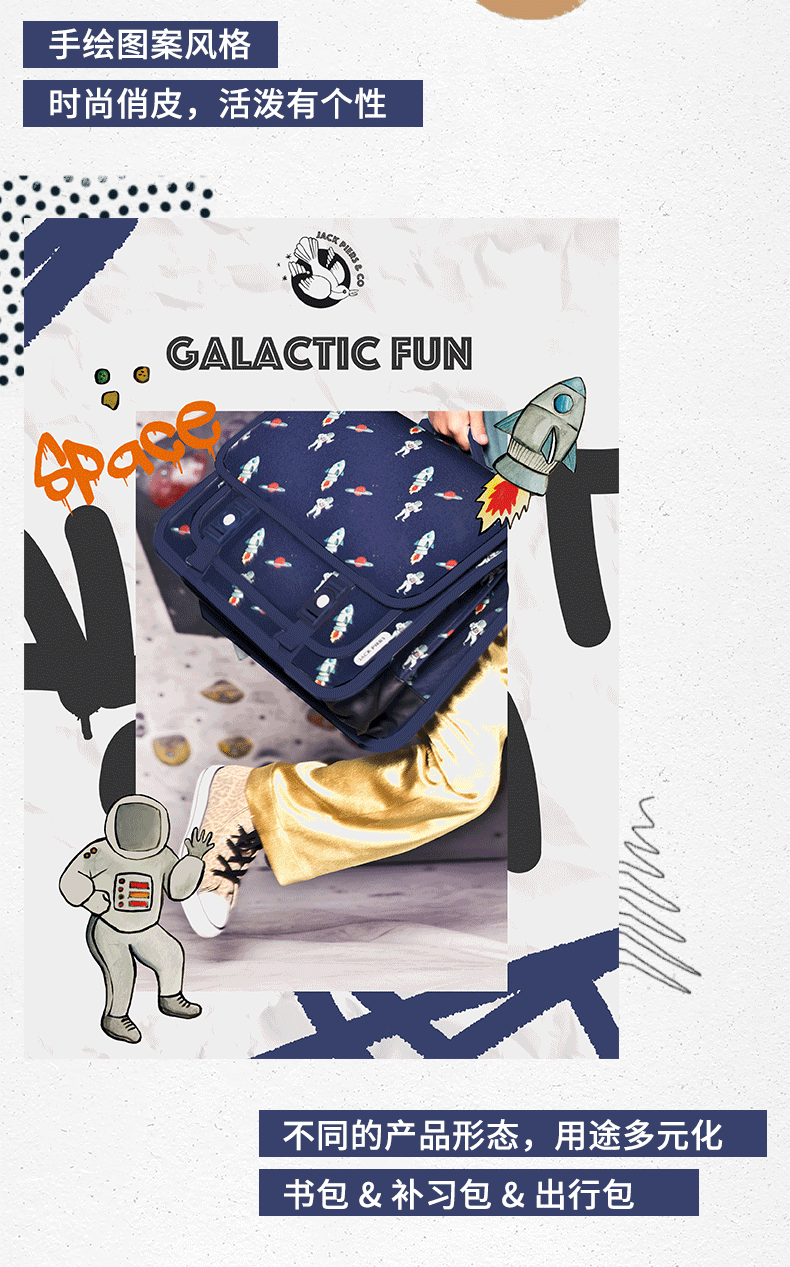 埃菲尔铁塔、火烈鸟、滑板、闪电等……各种经典/新奇元素,再配上明亮的配色,不光是孩子,大人都喜欢。