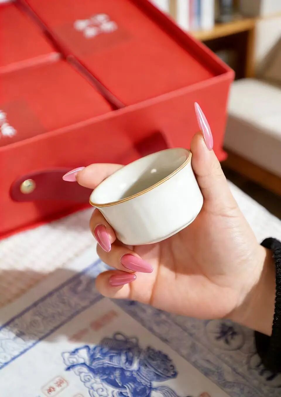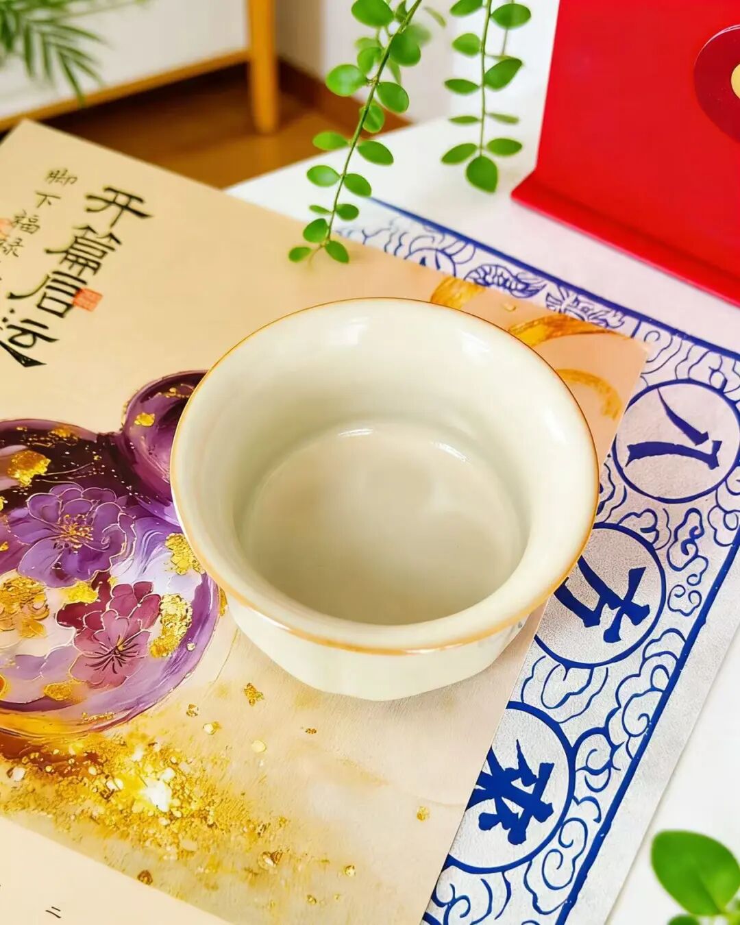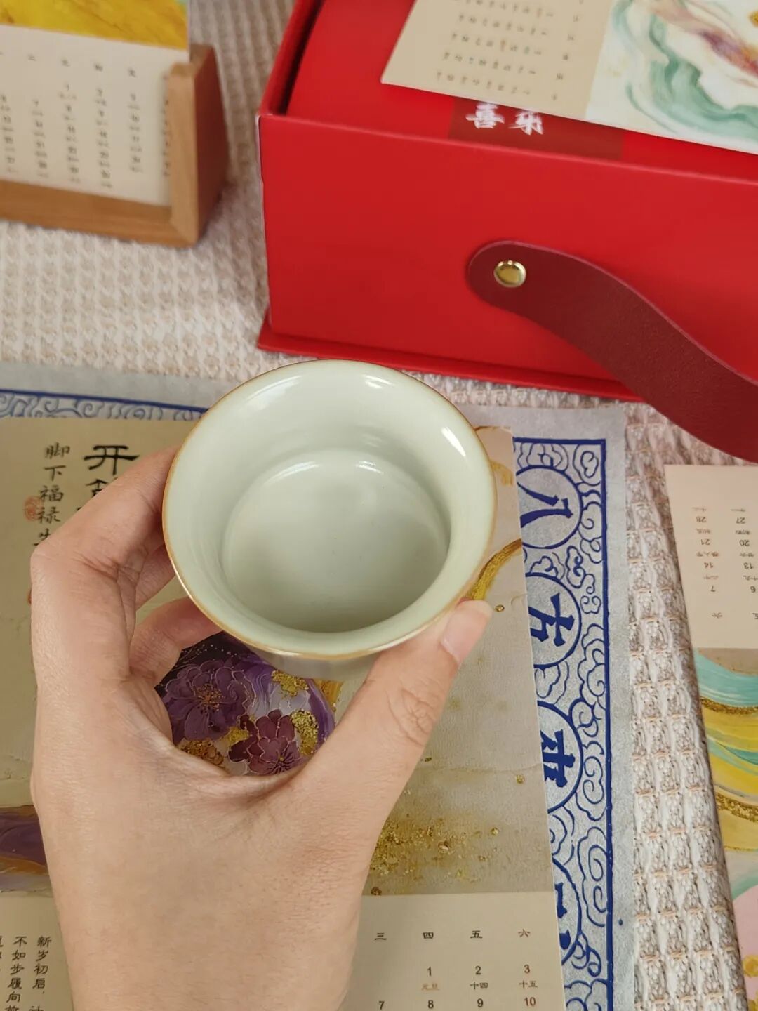 礼盒中蕞让我惊艳的,就是这只更具收藏价值的非遗汝窑六方杯。
