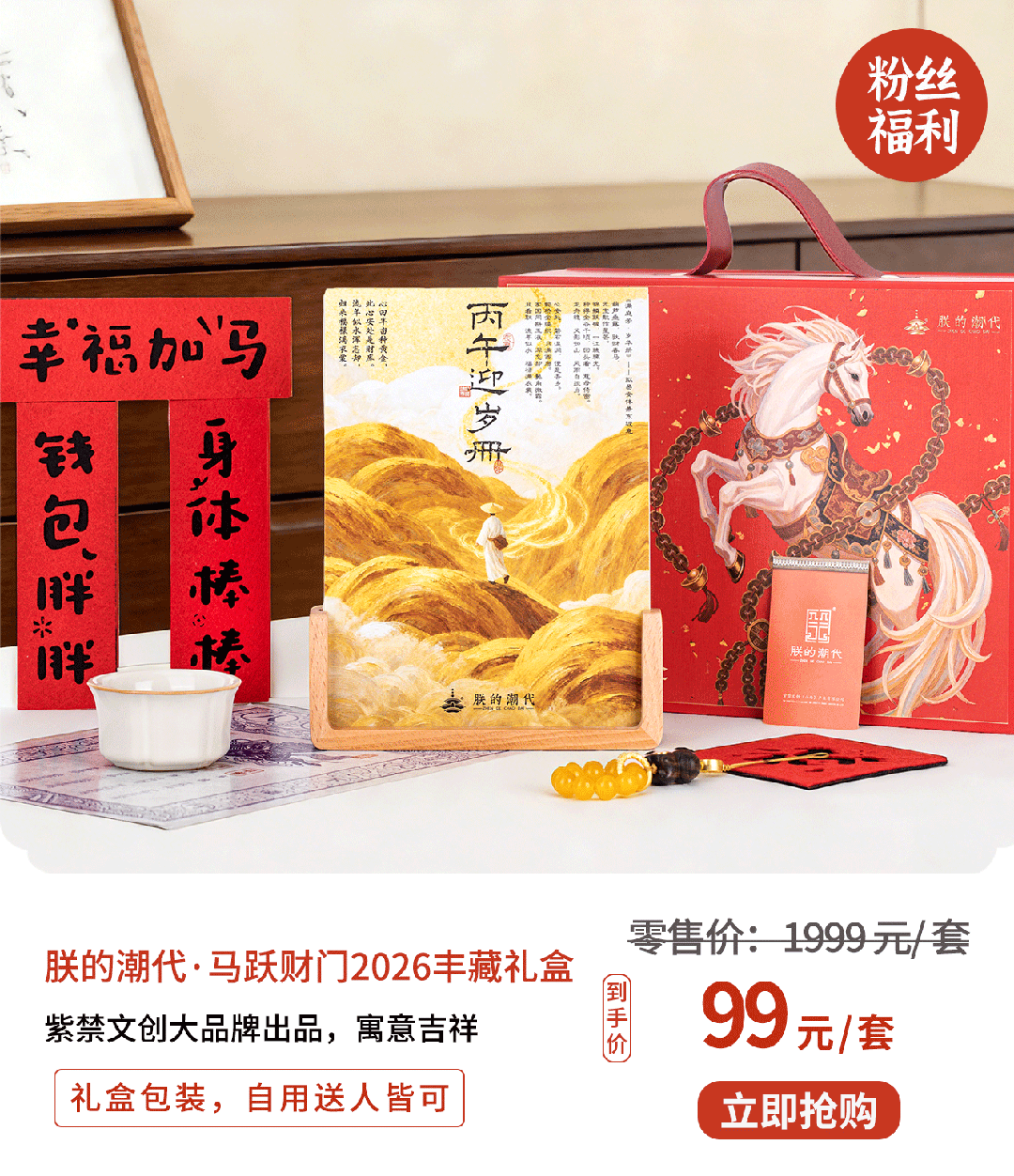 而这套紫禁文创旗下朕的潮代品牌出品的2026的马跃财门丰藏礼盒蕴藏着沉淀了600年的“财富智慧”。