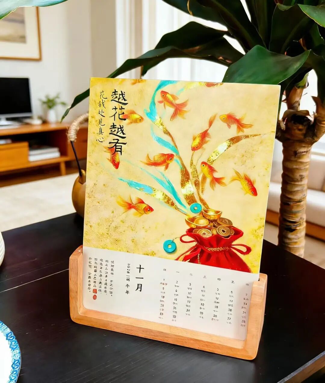 月历+茶盏+挂件+春联冰箱贴+马钞+实木底托: