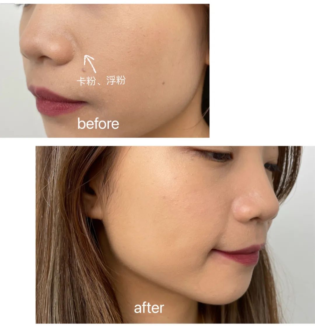 解决方案是妆前护肤先用前导精华打底,即使同一套护肤品+粉底液,服帖度真的有差,说不清为啥,但底妆像被磁石吸住了~